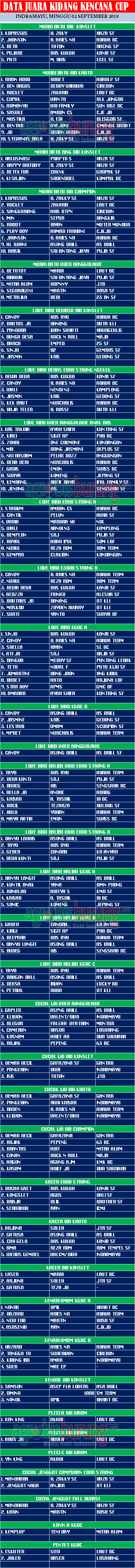Wilayah Pantura kembali bergolak di even Piala Kidang Kencana pada Minggu (02/09) dilapangan Ki Buyut Gentong, Losarang Indramayu. Gawe Ronggolawe Nusantara tersebut menelorkan banyak jawara handal yangmenguasai jalannya klomba, Cucak Hijau Oemar Oecil kembali memenangi laga lomba kicauan. Kali ini di Piala Kidang Kencana, jagoan Gafazaka sukses memetik tiga kali kemenangan yang kerja dengan Ngejambul dan ngetrok sambil nagen ditangkringan dengan gaya tarung bokong bagong mampu ditonjolkannya hingga raihan juara pun tak terbantahkan lagi.