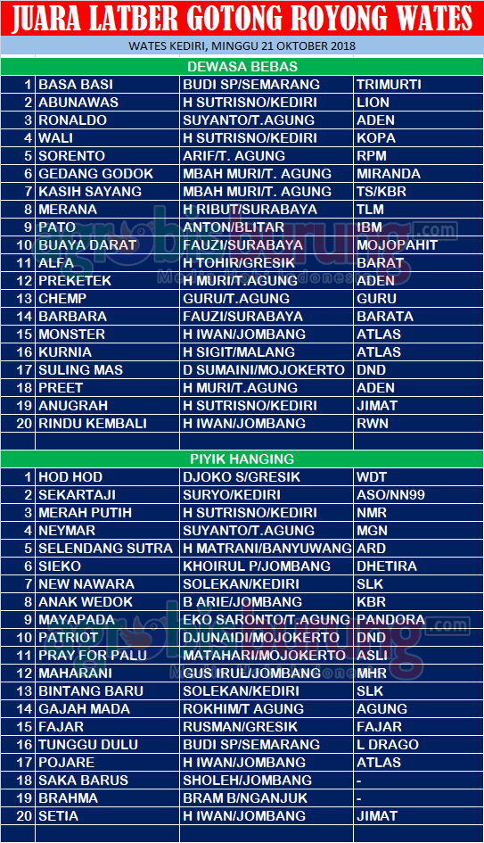 Kemenangan Basa Basi di latber gotong royong Wates di kelas dewasa bebas menjadi tampilan terbaik jawara yang sudah diprediksi sang pemilik bakal segera bikin heboh. Hal tersebut juga dikuatkan sang pengawal Basa Basi yaitu H Ribut/Mat Rouf yang melihat peform di Wates yang teristimewa selama sepekan tersebut. diposisi kedua dan ketiga di latber tersebut diraih Abunawas bergelang Lion dan Ronaldo milik Suyanto.