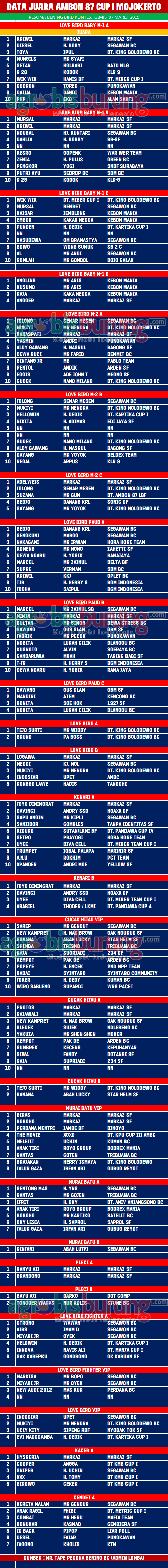 AGROBISBURUNG.COM – MOJOKERTO. Kontes kicauan bisa jadi ajang apa saja. Pastinya membuat seluruh kicau mania dapat senang dan bersilaturrahim dengan sesama kicau mania. Termasuk panitia dengan panitia yang menjadikan ajang kicauan sebagai moment tak terlupakan. Minimal sebagai simbol penghormatan atas jati diri seseorang. Seperti yang terjadi di arena kontes kicauan bertajuk Ambon LBF 87 Cup 1.