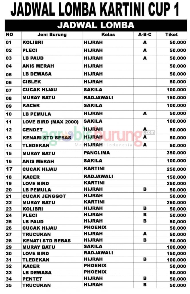 AGROBISBURUNG.COM – PEKALONGAN. Menjelang event Akbar Radjawali Indonesia DPC Pekalongan yang bertajuk piala Kartini Cup pada 21 April Mendatang sang ketua H.Zainal semakin giat melakukan sosialisasi kepada anggotanya. Beberapa perubahan kelas yang dilombakan demi memanjakan kicau mania Nusantara Antara lain di kelas Panglima yang dibandrol tiket 350 K mendapat plus hadiah dari juara 1-10. Tak kalah menarik juga di buka kelas Phoenix dengan tiket 50 K berhadiah sepeda motor