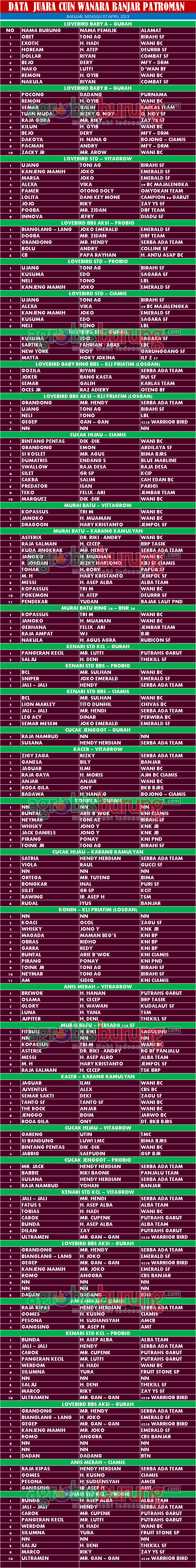 AGROBISBURUNG.COM – BANJAR. BCL masih tetap stabil di jalur juara. Kondisi vit menjadikan gacoan Sulhan unggul dua kali di urutan pertama kelas Kenari  pada gelaran Cuin Wanara BC yang dikemas BnR Banjar Patroman, Minggu (07/04). Ngedur sambil jalan ditangkringan tanpa jeda membuat koleksi kicaumania asal Kota Kembang ini, berada di tangga teratas.