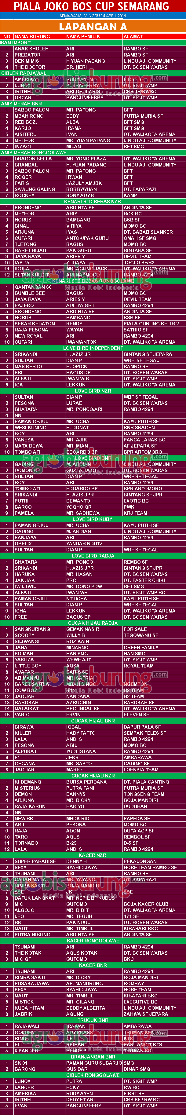 Headline Hobi Burung Kicauan Data Juara Piala Joko Bos Cup Semarang (14/04) agrobisburung 16 April 2019 juri RGN bertugas di piala Joko bos juri RGN bertugas di piala Joko bos Tinggalkan Komentar Post navigation Previous: Data Juara Siliwangi Bangkit Cup 1 Surabaya (14/04)Next: C. Ijo Killer mempesona, MB Skak Mat milik Agus NASA mengila di piala Joko Bos Semarang More Stories Headline Perkutut Profil Nunu Depok “Turun Gunung” Langsung Borong 5 Pasang K-Unggulan WAT BF Tasikmalaya, H. Pendi Nadira Jakarta Jebol K-WAT Brahmana & BDB BF Lombok Jebol K-WAT Raja Ampat agrobisburung 13 Januari 2026 Headline Juara Perkutut Jawara Bandar Jawa 1, Boxer & Joko Tarub Melejit ke Podium Utama Di Latihan Dinilai Pengcam Pengantenan Pamekasan agrobisburung 12 Januari 2026 Headline Juara Perkutut Jawara Gading Asmara & Cah Samin Berkuasa Dikelasnya di Latihan Dinila Pengda Bojonegoro agrobisburung 11 Januari 2026