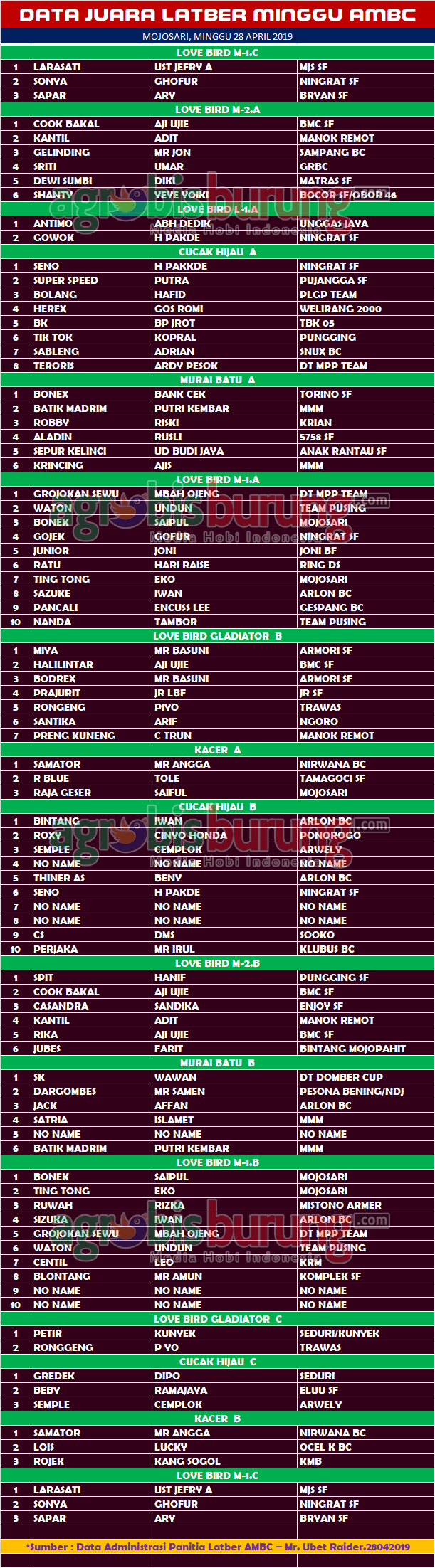 Agenda Headline Hobi Burung Juara Kicauan Kicauan Kicauan Organizer Profil Data Juara Latber Minggu AMBC Mojosari (28/04) agrobisburung 29 April 2019 Tinggalkan Komentar Post navigation Previous: Basa Basi Semakin Sulit di sentuh, President bikin kejutan di Siliwangi Cup XX BandungNext: Data Juara Miber Team Cup 1 BBMBC Mojokerto (28/04) More Stories Headline Hobi Lain Perkutut Profil Jawara Ruby Star Ikon Prima Rasa Team Bandung, Selama 2,5 Tahun Eksis di Papan Atas & Sudah Menjajal Semua Gelaran Lintas Blok agrobisburung 19 November 2025 Headline Juara Perkutut Latihan Dinilai Arisan Kaliwono, Dawuhan Sukowono Jadi Ajang Persiapan lomba, Jawara Suci & Rujak Cingur Tampil Joss agrobisburung 18 November 2025 Headline Perkutut Profil UKI BF Palu-Sulteng Siap Andalkan Hasil Produk Sendiri, Kakak-Adik Trah Jawara Domisol Moncer: Libanon Stabil & Seruni Terbaik LPJB #9 “Final Point” Majalengka agrobisburung 18 November 2025