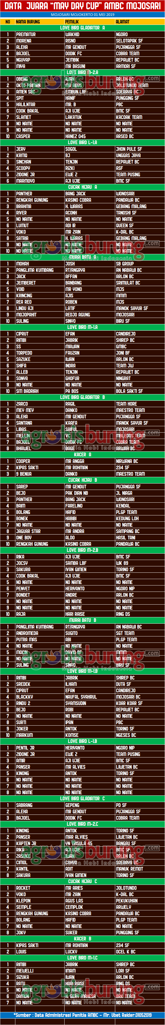 “Kicau mania itu potensi luar biasa. Pola persaudaraan dan kebersamaan yang dijadikan prinsip, merupakan bentuk nyata bila kicau mania sangat peduli dengan sesamanya. Termasuk juga pada buruh yang tak lain adalah saudara-saudaranya. AMBC hanya mampu memberikan wadah dan sarana, demi terwujudnya keinginan mereka menghormati saudaranya,” tandas Mr. Ronggo sembari menunjuk pada gantangan cucak hijau yang full pesertanya.