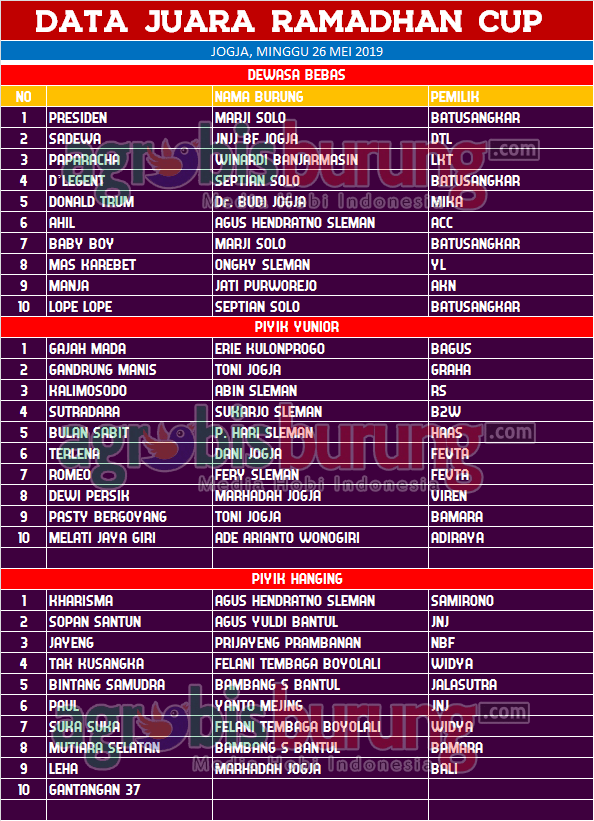 Headline Hobi Burung Juara Organizer Perkutut Perkutut Profil Data Juara Latber Ramadhan di Karangayam Jogjakarta, Minggu 26 Mei agrobisburung 27 Mei 2019 Data Juara Latber Ramadhan di Karangayam Jogjakarta, Minggu 26 Mei Tinggalkan Komentar Post navigation Previous: Data Juara Perkutut Ramadhan & Buka bersama di Banjarmasin, Minggu 26 MeiNext: Data Juara Perkutut Latber Perdana Agrowisata di Wonosobo, Minggu 26 Mei More Stories Headline Hobi Lain Perkutut Profil Christa Dwipa Praya NTB, Bakal Comeback Lomba Dengan Amunisi Ciamik Miliknya agrobisburung 17 Desember 2025 Headline Perkutut Profil Carpenter BF Mataram NTB, Kembangkan 50 Kandang Unggulan Dengan Trah Jawara agrobisburung 16 Desember 2025 Headline Perkutut Profil Satu Lagi Big Bos Asal NTB Bakal Ramaikan Perkutut Nasional 2026, Samuel BLT Arrowhead Siap Berkolaborasi HDL – Carpenter Dengan Amunisi Istimewa agrobisburung 15 Desember 2025