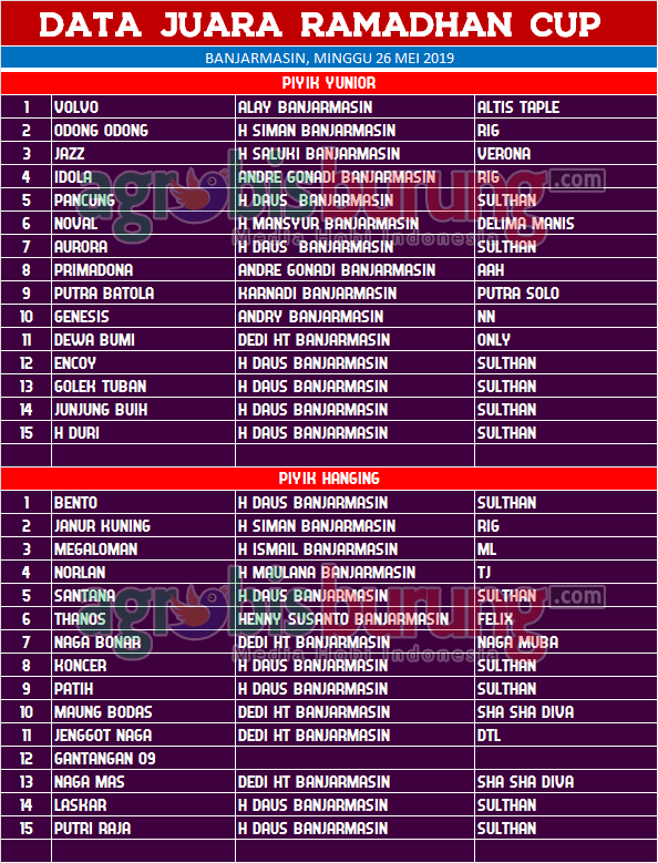 Headline Hobi Burung Juara Organizer Perkutut Perkutut Profil Data Juara Perkutut Ramadhan & Buka bersama di Banjarmasin, Minggu 26 Mei agrobisburung 27 Mei 2019 SUASANA LOMBA LIGA PERKUTUT BANJARMASIN 2019 Data Juara Perkutut Ramadhan & Buka bersama di Banjarmasin, Minggu 26 Mei SUASANA LOMBA LIGA PERKUTUT BANJARMASIN 2019 Tinggalkan Komentar Post navigation Previous: Data Juara Latber Ramdhan di Tegal, Minggu 26 MeiNext: Data Juara Latber Ramadhan di Karangayam Jogjakarta, Minggu 26 Mei More Stories Headline Juara Perkutut Jawara Putra Ttasik (Patas), Jengiskhan & Cah Triple Two Melejit Ke Podium Pertama Liga Bumi Roban #1 di Tuban 2026 agrobisburung 26 Januari 2026 Headline Juara Perkutut Pesertanya Luar Biasa di Opening Liga Batavia 2026, Jawara Rodtang, Kingdom, Gas Lee & Bintang Baru Melesat ke Podium Puncak agrobisburung 26 Januari 2026 Headline Juara Perkutut Latihan Dinilai Spesial “Hanging” Disambut Antusiasme Kungmania Priangan Timur, Peresmian Pengurus Baru P3SI Pengda Ciamis-Pangandaran, Putra Wibawa Ngorbit & Sabila Kencana BF Mendominasi agrobisburung 26 Januari 2026