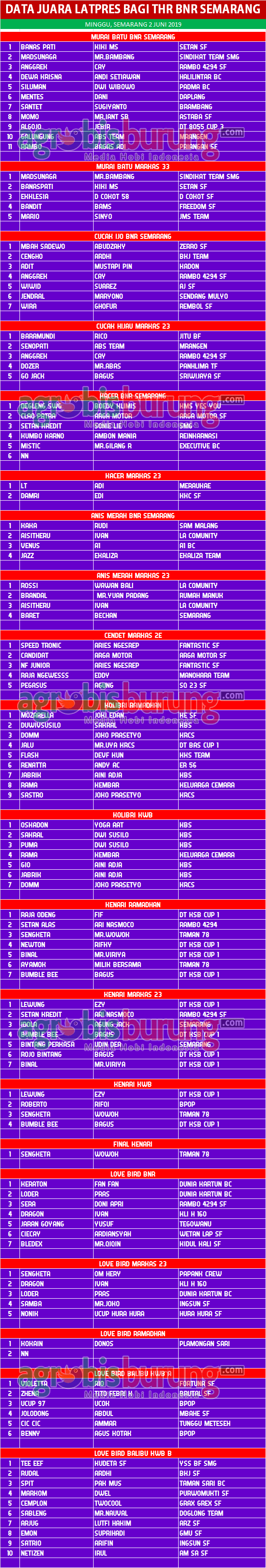 Headline Hobi Burung Juara Kicauan Kicauan Organizer Profil Data Juara Latpres Bagi THR BNR Semarang agrobisburung 4 Juni 2019 Data Juara Latpres Bagi THR BNR Semarang Tinggalkan Komentar Post navigation Previous: KJR Kandaskan Ambisi Cibeunying di Lomba Merpati Tinggi THR-an Lapang Urugan Sarijadi BandungNext: LB Se Kepo Pecah Telor Bonus Kelas Dewasa, Jaguar Dominasi Geng Hijau Special Akhir Ramadhan Sawunggaling BC Surabaya More Stories Headline Hobi Lain Perkutut Profil Siap Terjun Ke LPI 2026, Nurul Anggun Take Over Jawara Muda Hipersonik dari Kurniadi ASM Dengan Deal Fantastik agrobisburung 11 Februari 2026 Headline Juara Perkutut Profil Teamnya Semakin Solid, Jagonya Moncer di LP. Batavia #2 & Breedingnya Sudah Cetak Burung Ciamik agrobisburung 9 Februari 2026 Headline Hobi Lain Juara Perkutut Jawara Mistikus, Kingdom, Saritomo reborn & Bintang Baru Terbaik Utama di LP. #2 Batavia 2026 Bogor agrobisburung 9 Februari 2026