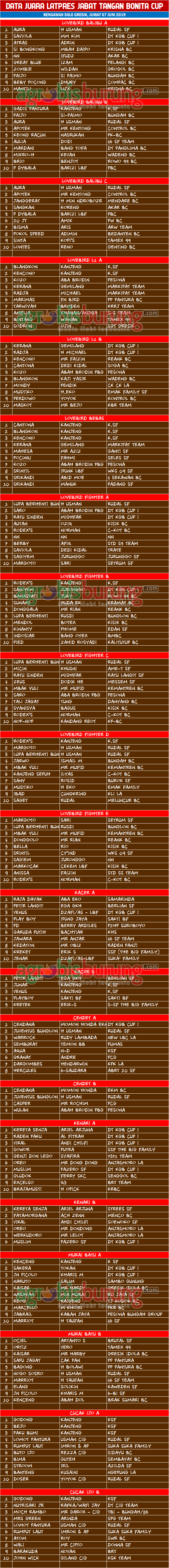 Data Juara Kicauan Latpres Jabat Tangan Bonita Cup, Bengawan Solo Gresik, Jumat 07 Juni