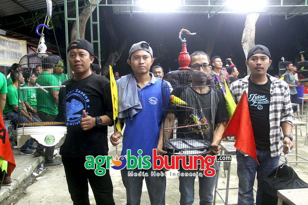 Kenapa momen ini sepertinya berkesan? Karena berdasar pengalaman, amunisi yang dibawa bisa ‘bergerak’ bersama jadi juara dalam satu lokasi, boleh dikata, baru sekarang agrobisburung.com jumpai. Pernah juga, bareng juara tapi di lokasi lomba yang berlainan. Padahal materi peserta lain juga tidak kalah ciamsornya, mengingat jumlah peserta kekekan bejubel hingga akhir acara. “Banyak burung bagus tapi syukur kita masih bisa bersaing dengan peserta lain,” papar U’ong. AB-IKO