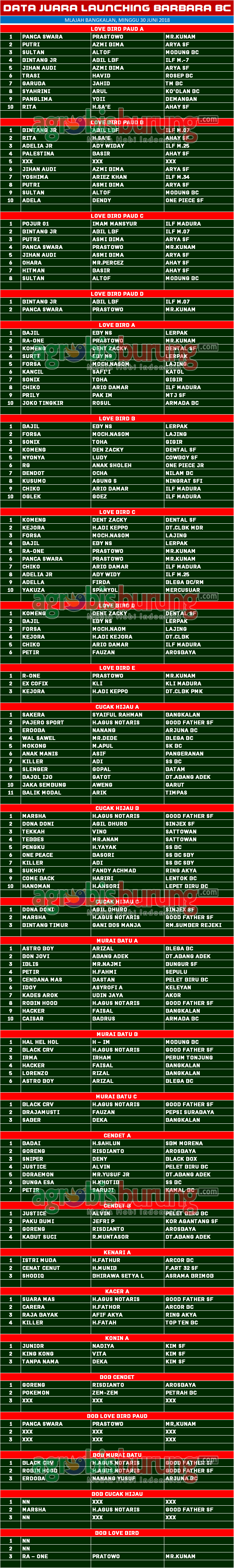 Headline Hobi Burung Juara Kicauan Kicauan Organizer Profil Data Juara Kicauan Lounching Barbara BC Di Bangkalan, Minggu 30 Juni agrobisburung 1 Juli 2019 Panitia Barbara BC AGROBISBURUNG.COM – BANGKALAN. Data Juara Kicauan Lounching Barbara BC Di Bangkalan, Minggu 30 Juni Panitia Barbara BC Tinggalkan Komentar Post navigation Previous: Dikawal Koh Sar, Anak Manja Melejit, Raider, Timor Leste & New Music berkibar di Kapolres Cup 2 ProbolinggoNext: Launching Barabara BC Bangkalan, Hadirkan Juri Radjawali Indonesia, ILF Madura Boyong Juara Kelas Keke’an More Stories Headline Perkutut Profil Pramando Jakarta Penghobi Pemula Pemberani, Siapkan Amunisi Lomba dengan Memborong Produk Terkini WAT BF Tasikmalaya Plus Booking Kandang WAT Slipknot & WAT Revolusi agrobisburung 19 November 2025 Headline Hobi Lain Perkutut Profil Jawara Ruby Star Ikon Prima Rasa Team Bandung, Selama 2,5 Tahun Eksis di Papan Atas & Sudah Menjajal Semua Gelaran Lintas Blok agrobisburung 19 November 2025 Headline Juara Perkutut Latihan Dinilai Arisan Kaliwono, Dawuhan Sukowono Jadi Ajang Persiapan lomba, Jawara Suci & Rujak Cingur Tampil Joss agrobisburung 18 November 2025