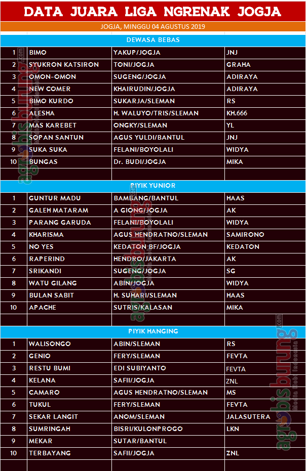 Headline Hobi Burung Juara Organizer Perkutut Perkutut Data Juara Perkutut Liga Ngrenak #7 di Jogja, Minggu 04 Agustus agrobisburung 5 Agustus 2019 AGROBISBURUNG.COM – JOGJA. Data Juara Perkutut Liga Ngrenak #7 di Jogja, Minggu 04 Agustus Tinggalkan Komentar Post navigation Previous: Data Juara Perkutut Liga perkutut Jateng Prokung Cup di Marina Semarang, Minggu 04 AgustusNext: Data Juara Kicauan Soft Lounching New Aura Community di Sidoarjo, Minggu 04 Agustus More Stories Headline Perkutut Profil Pramando Jakarta Penghobi Pemula Pemberani, Siapkan Amunisi Lomba dengan Memborong Produk Terkini WAT BF Tasikmalaya Plus Booking Kandang WAT Slipknot & WAT Revolusi agrobisburung 19 November 2025 Headline Hobi Lain Perkutut Profil Jawara Ruby Star Ikon Prima Rasa Team Bandung, Selama 2,5 Tahun Eksis di Papan Atas & Sudah Menjajal Semua Gelaran Lintas Blok agrobisburung 19 November 2025 Headline Juara Perkutut Latihan Dinilai Arisan Kaliwono, Dawuhan Sukowono Jadi Ajang Persiapan lomba, Jawara Suci & Rujak Cingur Tampil Joss agrobisburung 18 November 2025