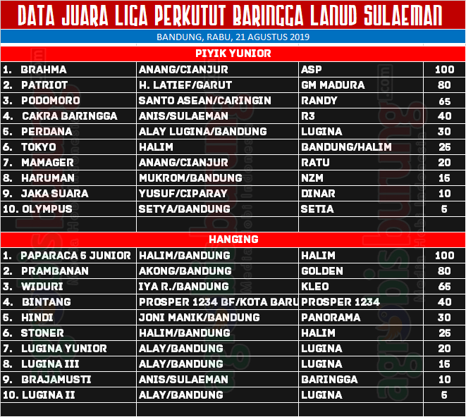Headline Hobi Burung Juara Organizer Perkutut Profil Data Juara Liga Perkutut Baringga di Lanud Sulaeman Bandung, Rabu 21 Agustus agrobisburung 23 Agustus 2019 AGROBISBURUNG.COM – BANDUNG. Data Juara Liga Perkutut Baringga di Lanud Sulaeman Bandung, Rabu 21 Agustus Tinggalkan Komentar Post navigation Previous: Arief Denjaka BF Majalengka langsung Eksis di lomba & Breeding MenyusulNext: Liga Perkutut Baringga Lanud Sulaeman Bandung Disambut Antusias, Putaran Berikutnya Digelar Kelas Dewasa Bebas More Stories Headline Perkutut Profil Pramando Jakarta Penghobi Pemula Pemberani, Siapkan Amunisi Lomba dengan Memborong Produk Terkini WAT BF Tasikmalaya Plus Booking Kandang WAT Slipknot & WAT Revolusi agrobisburung 19 November 2025 Headline Hobi Lain Perkutut Profil Jawara Ruby Star Ikon Prima Rasa Team Bandung, Selama 2,5 Tahun Eksis di Papan Atas & Sudah Menjajal Semua Gelaran Lintas Blok agrobisburung 19 November 2025 Headline Juara Perkutut Latihan Dinilai Arisan Kaliwono, Dawuhan Sukowono Jadi Ajang Persiapan lomba, Jawara Suci & Rujak Cingur Tampil Joss agrobisburung 18 November 2025