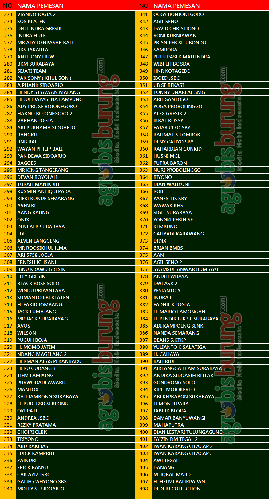 AGROBISBURUNG.COM – KLATEN. Up Date (06/09) Daftar No Urut & Nama Pemesan Tiket Lomba Piala Raja HB Cup Di Candi Prambanan Klaten DIY, Minggu 08 Spetember (TEBL 1-4, NOMER URUT 1 S/D 544)