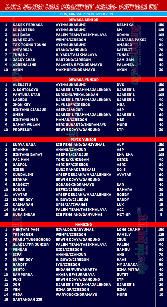 Headline Hobi Burung Juara Organizer Perkutut Perkutut Profil Data Juara Liga Perkutut Jabar – Pantura Putaran VII di Cirebon, Minggu 29 September agrobisburung 1 Oktober 2019 AGROBISBURUNG.COM – CIREBON. Data Juara Liga Perkutut Jabar – Pantura Putaran VII di Cirebon, Minggu 29 September Tinggalkan Komentar Post navigation Previous: Produk Aulia Bf Surabaya Semakin Cyuss saja, Teguh Surabaya Boyong Anak K-MonikaNext: DSK DT. Khofifah Cup Jatim Raih Juara Umum BC di Bandung Lautan Api 3 Bandung More Stories Headline Perkutut Profil Pramando Jakarta Penghobi Pemula Pemberani, Siapkan Amunisi Lomba dengan Memborong Produk Terkini WAT BF Tasikmalaya Plus Booking Kandang WAT Slipknot & WAT Revolusi agrobisburung 19 November 2025 Headline Hobi Lain Perkutut Profil Jawara Ruby Star Ikon Prima Rasa Team Bandung, Selama 2,5 Tahun Eksis di Papan Atas & Sudah Menjajal Semua Gelaran Lintas Blok agrobisburung 19 November 2025 Headline Juara Perkutut Latihan Dinilai Arisan Kaliwono, Dawuhan Sukowono Jadi Ajang Persiapan lomba, Jawara Suci & Rujak Cingur Tampil Joss agrobisburung 18 November 2025