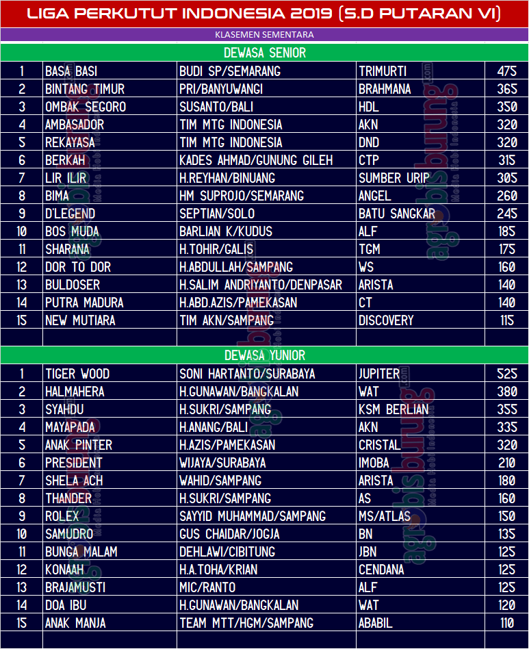 Di dewasa senior, Basa Basi milik Budi SP yang saat ini berada di puncak klasemen bakal tampil habis habisan, dengan jarak poin yang tipis tentunya mereka saling waspada, sedikit kesalahan fatal maka “kursi empuk” diposisi pertama bisa tergeser oleh lawan lawannya yang sudah pasang strategi. Peluang Bintang Timur, Ombak Segoro, Ambasador dan Rekayasa untuk menggeser posisi Basa Basi “Jika” tidak bunyi bakal tereleminasi posisinya oleh lawan bawahnya. Termasuk jago “kambing hitam” Bima ,milik HM Suprojo yang pada LPI Jog diuja menang telak atas lawan lawannya bakal tampil all out di JHL Arena. “Kita sudah setting Basa Basi untuk memang di JHL Arena dan ini akan menyulitkan lawan lawannya karena tanda tanda mau bunyi sudah terlihat sore tadi,” ugkap Mat Rouf.