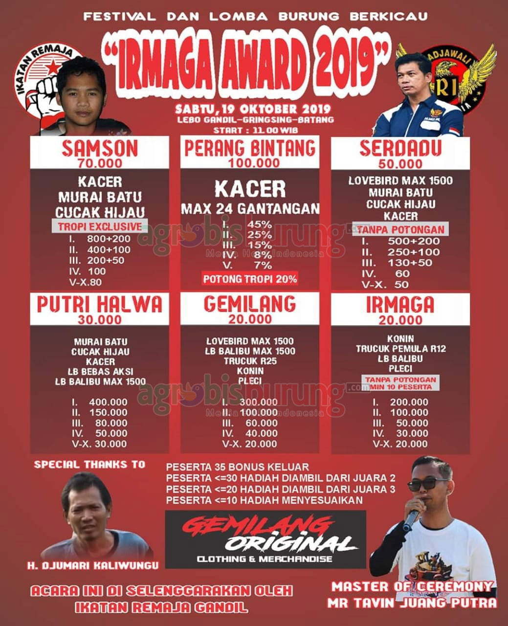Lomba Burung Berkicau Irmaga Award 2019 di Lebo Gandil – Grising Batang, Sabtu 19 Oktober