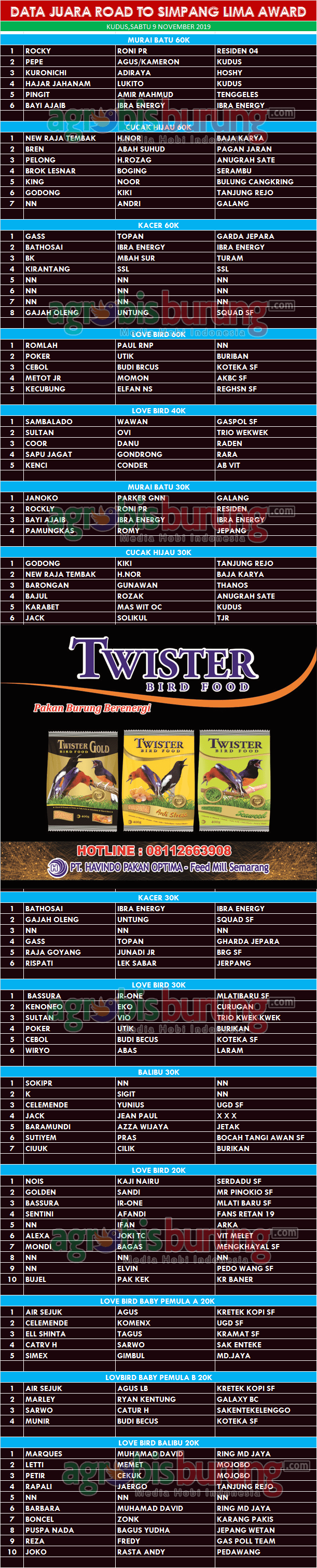 Headline Hobi Burung Juara Kicauan Kicauan Organizer Profil Data Juara Kicauan Road To Simpang LIma Award Di Semarang, Sabtu 09 November agrobisburung 11 November 2019 AGROBISBURUNG.COM – KUDUS. Data Juara Kicauan Road To Simpang Lima Award Di Semarang, Sabtu 09 November Tinggalkan Komentar Post navigation Previous: Data Juara Kicauan PGC Pecinta Cendet Gresik Cup 1, Sabtu 09 NovemberNext: Data Juara Anniversary KSOP Pekalongan Feat Setia Bersama Viral, Minggu 10 November More Stories Headline Perkutut Profil “Santri Rembang” Bergeliat, Bambang Wijanarko, H Rudi S & Budi Utomo Take Over Tiga Jawara Dari Gus Ahmad Hidmad Mojokerto agrobisburung 13 Maret 2026 Headline Perkutut Profil Kepincut Kualitas Suara Jantan Atlas 333F, Budi HIN Jakarta Akhirnya Jebol K-WAT Golden Viral dengan Nilai Transaksi Istimewa agrobisburung 9 Maret 2026 Headline Perkutut Profil Alin Cakra BSD Booking 4 Kandang Unggulan WAT BF Tasikmalaya, Hendry WAT, “Beli Booking Lebih Murah Dibandingkan Beli Dengar” agrobisburung 8 Maret 2026