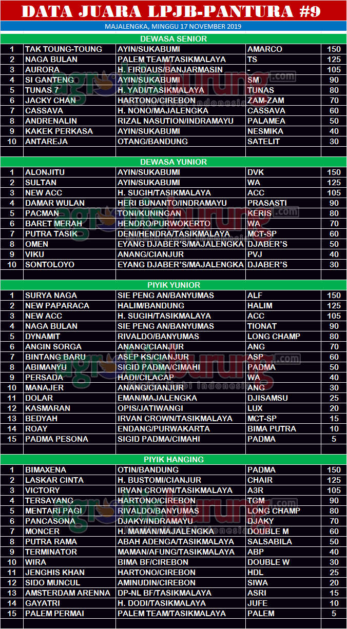 AGROBISBURUNG.COM – MAJALENGKA. Data Juara Perkutut LPJB Pantura #9 di Majalengka, Minggu 17 November