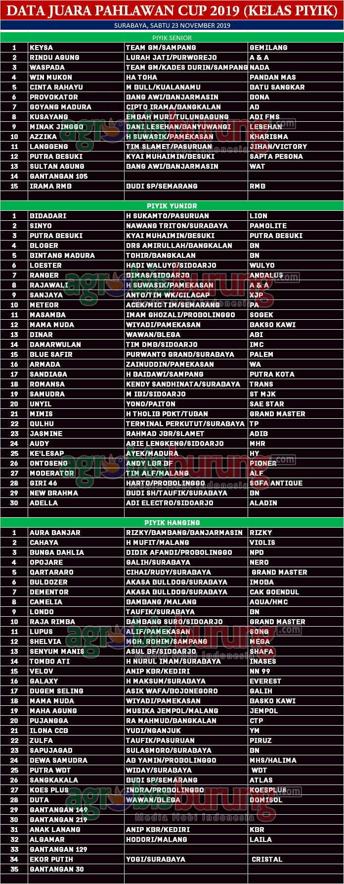 Headline Hobi Burung Juara Kicauan Kicauan Organizer Profil Data Juara Perkutut Pahlawan Cup di Surabaya, Sabtu 23 November (Kelas Piyik) agrobisburung 23 November 2019 AGROBISBURUNG.COM – SURABAYA. Data Juara Perkutut Pahlawan Cup di Surabaya, Sabtu 23 November (Kelas Piyik) Tinggalkan Komentar Post navigation Previous: Data Juara Perkutut Si Jalak Harupat # 6 di Bandung, Kamis 21 NovemberNext: Duta Prosper, Sinar Bandung & Bimaxena Terbaik, Sha-Sha Duta, ANG Team & Agus Rockets Puncaki Klasemen Sementara Liga SJH 2019 More Stories Headline Perkutut Profil Nunu Depok “Turun Gunung” Langsung Borong 5 Pasang K-Unggulan WAT BF Tasikmalaya, H. Pendi Nadira Jakarta Jebol K-WAT Brahmana & BDB BF Lombok Jebol K-WAT Raja Ampat agrobisburung 13 Januari 2026 Headline Juara Perkutut Jawara Bandar Jawa 1, Boxer & Joko Tarub Melejit ke Podium Utama Di Latihan Dinilai Pengcam Pengantenan Pamekasan agrobisburung 12 Januari 2026 Headline Juara Perkutut Jawara Gading Asmara & Cah Samin Berkuasa Dikelasnya di Latihan Dinila Pengda Bojonegoro agrobisburung 11 Januari 2026