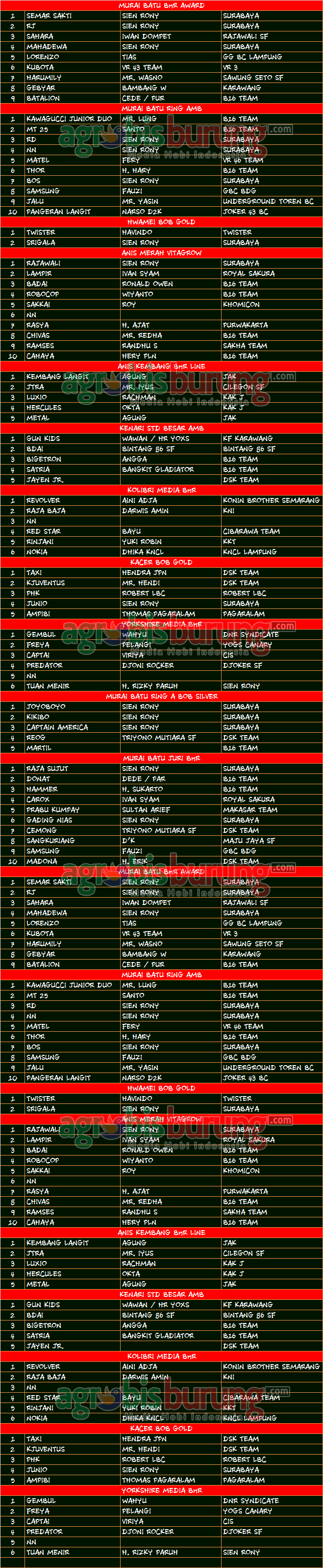 Headline Hobi Burung Juara Kicauan Kicauan Organizer Data Juara Kicauan BNR Award 2019 di Jakarta, Minggu 15 Desember (LAP. B) agrobisburung 18 Desember 2019 AGROBISBURUNG.COM – JAKARTA. Data Juara Kicauan BNR Award 2019 di Jakarta, Minggu 15 Desember (LAP. B) Tinggalkan Komentar Post navigation Previous: Rimba Sakti Nyeri, Kenda Berulah, Ban Oli Sabet Juara Umum SF Di lounching Tambakboyo BC INext: Data Juara Kicauan BNR Award 2019 di Jakarta, Minggu 15 Desember (LAP. C) More Stories Headline Hobi Lain Perkutut Profil Siap Terjun Ke LPI 2026, Nurul Anggun Take Over Jawara Muda Hipersonik dari Kurniadi ASM Dengan Deal Fantastik agrobisburung 11 Februari 2026 Headline Juara Perkutut Profil Teamnya Semakin Solid, Jagonya Moncer di LP. Batavia #2 & Breedingnya Sudah Cetak Burung Ciamik agrobisburung 9 Februari 2026 Headline Hobi Lain Juara Perkutut Jawara Mistikus, Kingdom, Saritomo reborn & Bintang Baru Terbaik Utama di LP. #2 Batavia 2026 Bogor agrobisburung 9 Februari 2026
