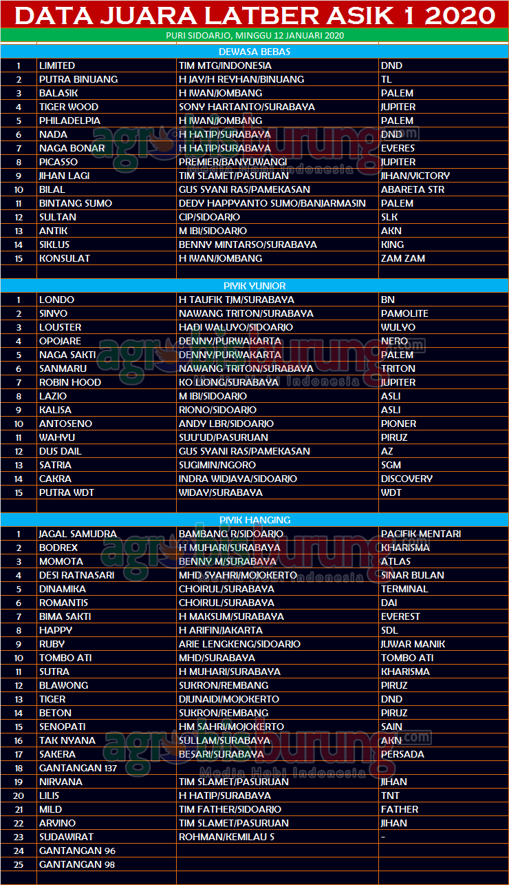 Headline Hobi Burung Juara Organizer Perkutut Perkutut Profil Data Juara Perkutut Latber Asik di Sidoarjo, Minggu 12 Januari agrobisburung 12 Januari 2020 AGROBISBURUNG.COM – SIDOARJO. Data Juara Perkutut Latber Asik di Sidoarjo, Minggu 12 Januari Tinggalkan Komentar Post navigation Previous: Cipta Agung Lejitkan produk CTP, Jimat & Joda Puas dengan Peformanya di Latber JBN Galis BangkalanNext: Data Juara Perkutut Salatiga Cup, Minggu 12 Januari More Stories Headline Hobi Lain Perkutut Profil Siap Terjun Ke LPI 2026, Nurul Anggun Take Over Jawara Muda Hipersonik dari Kurniadi ASM Dengan Deal Fantastik agrobisburung 11 Februari 2026 Headline Juara Perkutut Profil Teamnya Semakin Solid, Jagonya Moncer di LP. Batavia #2 & Breedingnya Sudah Cetak Burung Ciamik agrobisburung 9 Februari 2026 Headline Hobi Lain Juara Perkutut Jawara Mistikus, Kingdom, Saritomo reborn & Bintang Baru Terbaik Utama di LP. #2 Batavia 2026 Bogor agrobisburung 9 Februari 2026