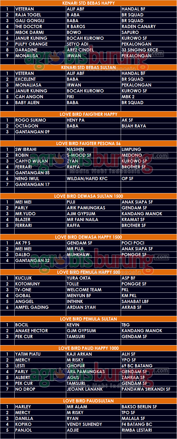 Headline Hobi Burung Juara Kicauan Kicauan Organizer Profil Data Juara Road To AB-Galeh Cup 1 di Pekalongan, Senin 13 Januari agrobisburung 14 Januari 2020 AGROBISBURUNG.COM – PEKALONGAN. Data Juara Road To AB-Galeh Cup 1 di Pekalongan, Senin 13 Januari Tinggalkan Komentar Post navigation Previous: Data Juara Kicauan Lounching Sabtu Ceria The Racing Star di Surabaya, Sabtu 11 JanuariNext: Data Juara Hello Kitty Bird Contest di Cibubur Jakarta, Minggu 12 Januari (LAP. A) More Stories Headline Juara Perkutut Jawara Rodtang, Raden Segoro & Karebet Meraih Podium Puncak Di Liga Ladini #9 Depok Bersatu 2025 agrobisburung 29 November 2025 Headline Perkutut Profil H Hairul Tiga Bintang Pamekasan Boyong Amunisi Ciamik Dari Ivan BTM Genius Team Dengan Transaksi Super Fantastik agrobisburung 29 November 2025 Headline Perkutut Profil Tambah Amunisi & Trah Ciamik H Iwan TS Jombang Boyong Produk Grand Master Dan LY BF Surabaya agrobisburung 28 November 2025