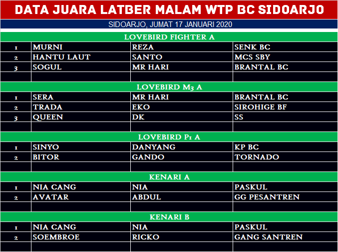 Headline Hobi Burung Juara Organizer Perkutut Perkutut Profil Data Juara Kicauan Latber Malam WTP BC Sidoarjo, Jumat 17 Januari agrobisburung 19 Januari 2020 AGROBISBURUNG.COM – SIDOARJO. Data Juara Kicauan Latber Malam WTP BC Sidoarjo, Jumat 17 Januari Tinggalkan Komentar Post navigation Previous: Data Juara Kicauan Spesial Ultah Unggaran Satu, Sabtu 18 JanuariNext: Data Juara Perkutut Bupati Bangkalan Cup 2020, Minggu 19 Januari More Stories Headline Perkutut Profil UKI Team Palu-Sulteng Semakin Eksis di Jalur Podium, Al-Hadid Runner-Up & Libanon Produk Sendiri Ramaikan Persaingan DS di Liga Jateng Gayeng #7 Solo Raya agrobisburung 27 Oktober 2025 Headline Juara Perkutut Pemanasan Jelang LP. Batavia “Closing Ceremony” Bekasi & LPJB #9 “Final Point” Majalengka, Starbucks & Unicorn Terbaik di Liga Kopi Luhur #5 Cirebon agrobisburung 26 Oktober 2025 Headline Juara Perkutut Bangkitnya Perkutut Madiun, Jawara Monica & Cholil jadi Rising Star di Liga Hanging Madiun 2025 agrobisburung 26 Oktober 2025