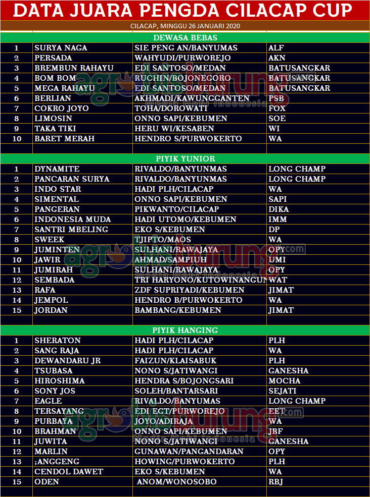 Headline Hobi Burung Juara Organizer Perkutut Perkutut Profil Data Juara Perkutut Pengda Cilacap Cup, Minggu 26 Januari agrobisburung 26 Januari 2020 AGROBISBURUNG.COM – CILACAP. Data Juara Perkutut Pengda Cilacap Cup, Minggu 26 Januari Tinggalkan Komentar Post navigation Previous: Data Juara Perkutut Pocan Bersatu Di Pocan Sidoarjo, Minggu 26 JanuariNext: Data Juara Kicauan Latber Ruitn Basecamp Radja di Semarang, Sabtu 25 Januari More Stories Headline Perkutut Profil Raih Double Winners, Jawara Gobang Jadi Terbaik di Liga Batavia 2025 & Liga Kab. Tangerang, Mul Gobang Jakarta Kembali Melejit Prestasinya agrobisburung 11 November 2025 Headline Perkutut Profil Rosa Jakarta Merasa Tertantang Stabilkan Jagoannya di Lapangan, Blue Star (WAT) Tembus 7 Besar PY “Closing Ceremony” LP. Batavia & Langsung Banyak Penawaran agrobisburung 11 November 2025 Headline Juara Perkutut Penuh Kejutan, Jawara Panji Jr Melejit & Heri Wulandari Sapu Bersih Tiga Besa Di Latihan Dinilai Pengda Bojonegoro agrobisburung 10 November 2025