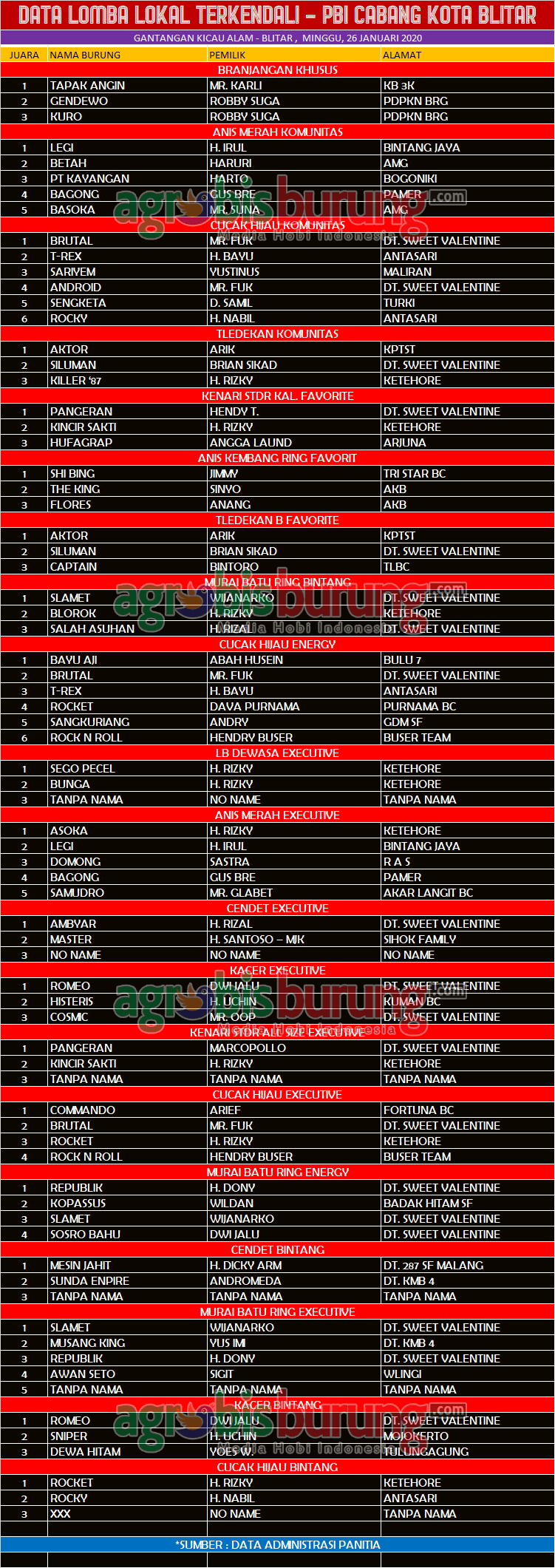 Headline Hobi Burung Juara Kicauan Kicauan Organizer Profil Data Juara Kicauan Lokal Terkendali PBI Cabang Blitar, Minggu 26 Januari agrobisburung 30 Januari 2020 Susana lomba di kelas Murai Batu Ring AGROBISBURUNG.COM – BLITAR. Data Juara Kicauan Lokal Terkendali PBI Cabang Blitar, Minggu 26 Januari Susana lomba di kelas Murai Batu Ring Tinggalkan Komentar Post navigation Previous: Pesertanya Membludak, Keysha Tim GM kembali Beraksi, Opo Jare & Ancaman Bertarung ketat di Noufus BF Cup di PamekasanNext: DT Sweet Valentine dan Ketehore SF, Rebut “Singgasana” PBI Cabang Kota Blitar More Stories Headline Perkutut Profil Raih Double Winners, Jawara Gobang Jadi Terbaik di Liga Batavia 2025 & Liga Kab. Tangerang, Mul Gobang Jakarta Kembali Melejit Prestasinya agrobisburung 11 November 2025 Headline Perkutut Profil Rosa Jakarta Merasa Tertantang Stabilkan Jagoannya di Lapangan, Blue Star (WAT) Tembus 7 Besar PY “Closing Ceremony” LP. Batavia & Langsung Banyak Penawaran agrobisburung 11 November 2025 Headline Juara Perkutut Penuh Kejutan, Jawara Panji Jr Melejit & Heri Wulandari Sapu Bersih Tiga Besa Di Latihan Dinilai Pengda Bojonegoro agrobisburung 10 November 2025