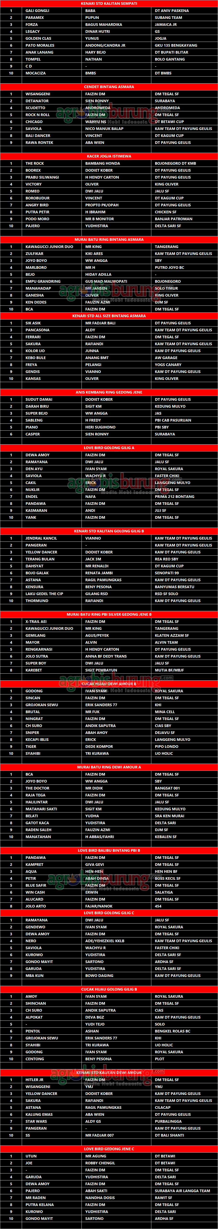 AGROBISBURUNG.COM – JOGJA. Data Juara Kicauan Sweet Valentine Jogja, Minggu 16 Februari ( Tabel 1)