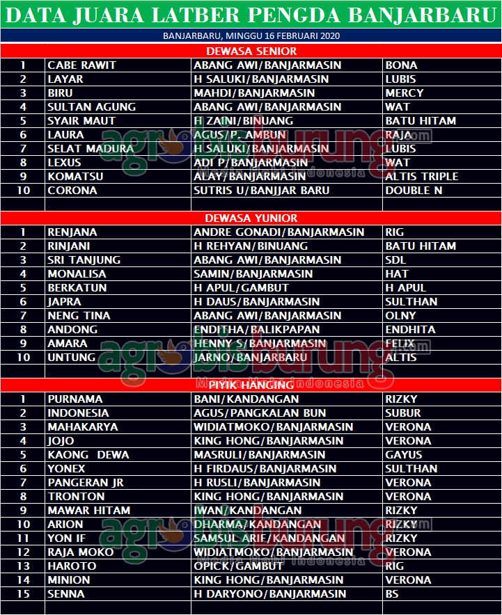 Headline Hobi Burung Juara Organizer Perkutut Perkutut Profil Data Juara Perkutut Latber Pengda Banjarbaru – Kalimantan Selatan, Minggu 16 Februari agrobisburung 17 Februari 2020 AGROBISBURUNG.COM – BANJARBARU. Data Juara Perkutut Latber Pengda Banjarbaru – Kalimantan Selatan, Minggu 16 Februari Tinggalkan Komentar Post navigation Previous: Data Juara Perkutut Salatiga Maju Cup – LP Jateng Gayeng di Salatiga, Minggu 16 FebruariNext: Tiket terjual H-14, Sanmaru & Dinnar Melenggang Manis di Latber Pesona Mastrip Probolinggo More Stories Headline Hobi Lain Perkutut Profil Christa Dwipa Praya NTB, Bakal Comeback Lomba Dengan Amunisi Ciamik Miliknya agrobisburung 17 Desember 2025 Headline Perkutut Profil Carpenter BF Mataram NTB, Kembangkan 50 Kandang Unggulan Dengan Trah Jawara agrobisburung 16 Desember 2025 Headline Perkutut Profil Satu Lagi Big Bos Asal NTB Bakal Ramaikan Perkutut Nasional 2026, Samuel BLT Arrowhead Siap Berkolaborasi HDL – Carpenter Dengan Amunisi Istimewa agrobisburung 15 Desember 2025
