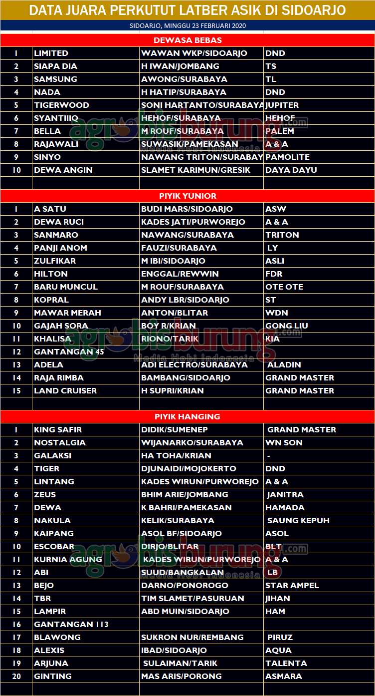 Headline Hobi Burung Juara Kicauan Kicauan Organizer Profil Data Juara Perkutut Latber Asik Di Sidoarjo, Minggu 23 Februari agrobisburung 23 Februari 2020 AGROBISBURUNG.COM – SIDOARJO. Data Juara Perkutut Latber Asik Di Sidoarjo, Minggu 23 Februari Tinggalkan Komentar Post navigation Previous: Mas Falah Untuk Kendal Bangkit Bersama Sangkar Jendral & Sajikan Kemasan Menarik All Clas Tanpa PotonganNext: Pesertanya Meningkat, Legendaris, A Satu & King Safir Bikin Heboh di latber Asik Sidoarjo More Stories Headline Hobi Lain Perkutut Profil Christa Dwipa Praya NTB, Bakal Comeback Lomba Dengan Amunisi Ciamik Miliknya agrobisburung 17 Desember 2025 Headline Perkutut Profil Carpenter BF Mataram NTB, Kembangkan 50 Kandang Unggulan Dengan Trah Jawara agrobisburung 16 Desember 2025 Headline Perkutut Profil Satu Lagi Big Bos Asal NTB Bakal Ramaikan Perkutut Nasional 2026, Samuel BLT Arrowhead Siap Berkolaborasi HDL – Carpenter Dengan Amunisi Istimewa agrobisburung 15 Desember 2025