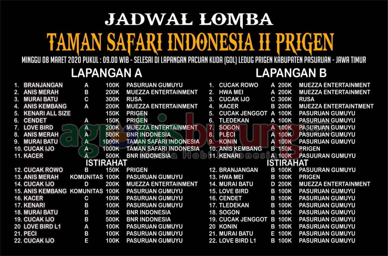 Agenda Headline Hobi Burung Kicauan Kicauan Organizer Profil Lomba Burung Taman Safari Indonesia II Prigen Pasuruan, Minggu 08 Maret 2020 agrobisburung 26 Februari 2020 AGROBISBURUNG.COM – PANDAAN. Lomba Burung Taman Safari Indonesia II Prigen Pasuruan, Minggu 08 Maret 2020 Tinggalkan Komentar Post navigation Previous: Puma BF & H. Bowo Mendominasi Latber Cirebon Ceria, Persiapan New LPJJB-Danlanal Cup (15/3)Next: Brahma Is Back, Hypnotis Eksis & Star Blue Ngorbit di Liga Baringga Bandung #9 More Stories Headline Perkutut Profil Hendry Sobbandi : “Pemula Perkutut Tak Perlu Bingung dalam Memilih Burung Berkualitas, Fokus Saja pada Karakter Suara !” agrobisburung 27 Februari 2026 Headline Juara Perkutut WAT BF Tasikmalaya “Upgrade” Formasi Kandang Secara Berkala untuk Tingkatkan Kualitas Produksi, Daftar Bookingan Merata & Stok Anakan Selalu “Sold Out” agrobisburung 25 Februari 2026 Headline Organizer Perkutut Hasil Musda Jombang 2026, Agung Hariadi Terpilih Jadi Ketua Baru Pengda Jombang Secara Aklamasi & Siap Lanjutkan Program Ketua Lama agrobisburung 20 Februari 2026