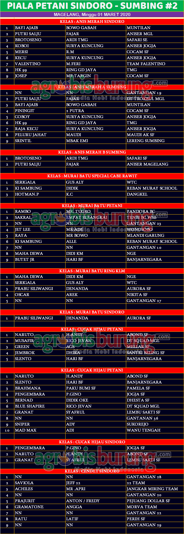 Headline Hobi Burung Juara Kicauan Kicauan Organizer Profil Data Juara KIcauan Petani Sindoro – Sumbing # 2 di Magelang, Minggu 01 Maret agrobisburung 4 Maret 2020 AGROBISBURUNG.COM – MAGELANG. Data Juara KIcauan Petani Sindoro – Sumbing # 2 di Magelang, MInggu 01 Maret Tinggalkan Komentar Post navigation Previous: Data Juara Kicauan KWK Cup di Gresik, Minggu 01 MaretNext: KAW Duta Payung Geulis Sukses raih juara umum BC di Walikota Banjar More Stories Headline Hobi Lain Perkutut Profil Siap Terjun Ke LPI 2026, Nurul Anggun Take Over Jawara Muda Hipersonik dari Kurniadi ASM Dengan Deal Fantastik agrobisburung 11 Februari 2026 Headline Juara Perkutut Profil Teamnya Semakin Solid, Jagonya Moncer di LP. Batavia #2 & Breedingnya Sudah Cetak Burung Ciamik agrobisburung 9 Februari 2026 Headline Hobi Lain Juara Perkutut Jawara Mistikus, Kingdom, Saritomo reborn & Bintang Baru Terbaik Utama di LP. #2 Batavia 2026 Bogor agrobisburung 9 Februari 2026
