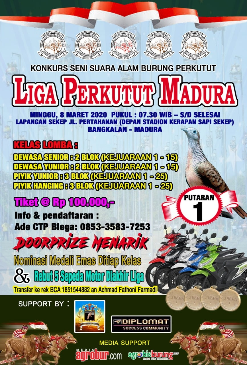 Sempat “Kandas” beberapa Tahun akhirnya Liga Perkutut Madura 2020 digulirkan, Perdana Minggu 08 Maret di Bangkalan