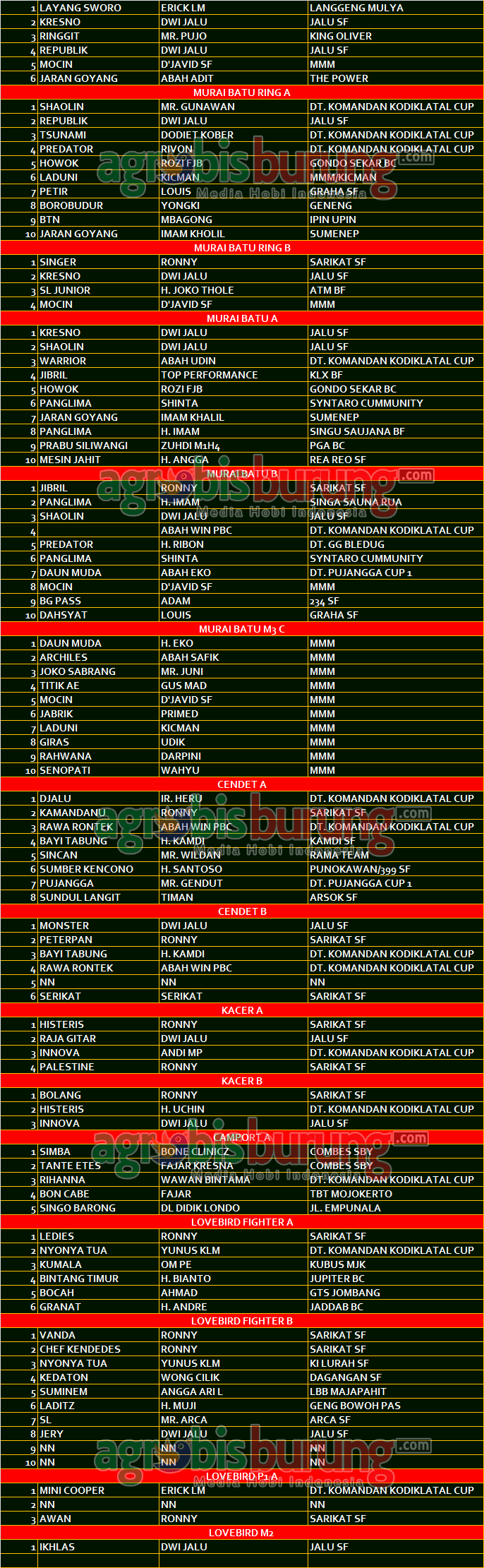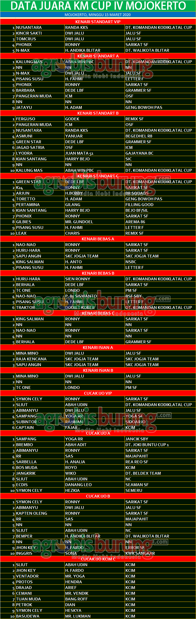 Headline Hobi Burung Juara Kicauan Kicauan Organizer Profil Data Juara Kicauan KM Cup IV Mojokerto, Minggu 15 maret agrobisburung 16 Maret 2020 Murai Mania Mojokerto AGROBISBURUNG.COM – MOJOKERTO. Data Juara Kicauan KM Cup IV Mojokerto, Minggu 15 maret Juara Umum BC DT Komandan Kodiklatal Cup I Juara Umum Sarikat SF Mas Papoe (Kiri) Bersama Samsul Aripin Perwakilan Pakan Burung Phoenix Jatim Murai Mania Mojokerto Tinggalkan Komentar Post navigation Previous: Abu Dhabi, Lulu Sumo & Jojo jadi Bintang lapangan di Latber Pengda Banjarmasin feat PR AresNext: Pemula Lombok Ramaikan LPL 2020, Elok & Amazing Amazone Tampil Cantik di Liga Perkutut Lombok NTB More Stories Headline Hobi Lain Perkutut Profil Christa Dwipa Praya NTB, Bakal Comeback Lomba Dengan Amunisi Ciamik Miliknya agrobisburung 17 Desember 2025 Headline Perkutut Profil Carpenter BF Mataram NTB, Kembangkan 50 Kandang Unggulan Dengan Trah Jawara agrobisburung 16 Desember 2025 Headline Perkutut Profil Satu Lagi Big Bos Asal NTB Bakal Ramaikan Perkutut Nasional 2026, Samuel BLT Arrowhead Siap Berkolaborasi HDL – Carpenter Dengan Amunisi Istimewa agrobisburung 15 Desember 2025