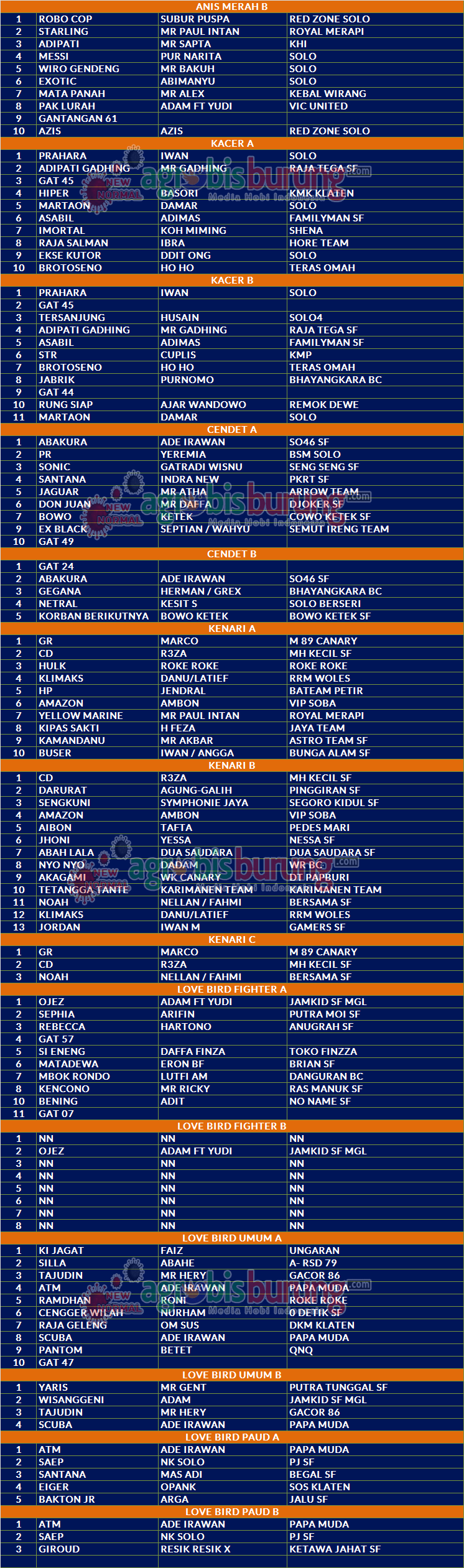 Headline Hobi Burung Juara Kicauan Kicauan Organizer Profil Data Juara Halal Bihalal Perdana BF di Wonosari Klaten, Minggu 14 Juni agrobisburung 16 Juni 2020 Data Juara Halal Bihalal Perdana BF di Wonosari Klaten, Minggu 14 Juni Tinggalkan Komentar Advertisement Advertisement Tinggalkan Komentar Post navigation Previous: Semarak Puter Indonesia, Pengurus P4SI Surabaya Terbentuk Dan Langsung Prioritaskan Program Diklat JuriNext: CI Batosai Kembali Berulah, Berikan Point kemenangan Untuk Febi Intan Sakti BC Semarang More Stories Headline Hobi Lain Perkutut Profil Christa Dwipa Praya NTB, Bakal Comeback Lomba Dengan Amunisi Ciamik Miliknya agrobisburung 17 Desember 2025 Headline Perkutut Profil Carpenter BF Mataram NTB, Kembangkan 50 Kandang Unggulan Dengan Trah Jawara agrobisburung 16 Desember 2025 Headline Perkutut Profil Satu Lagi Big Bos Asal NTB Bakal Ramaikan Perkutut Nasional 2026, Samuel BLT Arrowhead Siap Berkolaborasi HDL – Carpenter Dengan Amunisi Istimewa agrobisburung 15 Desember 2025