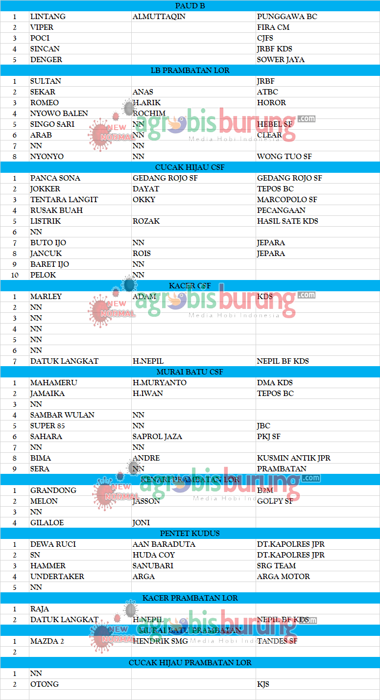 Data Juara Kicauan Piala Kades Cup Prambatan Lor Kaliwungu Kudus, Minggu 16 Agustus