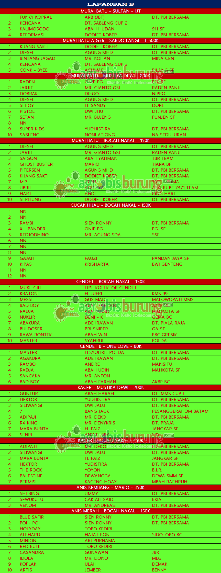 Data Juara Kicauan Anniversary Sobat DF di Sidoarjo, Minggu 23 Agustus