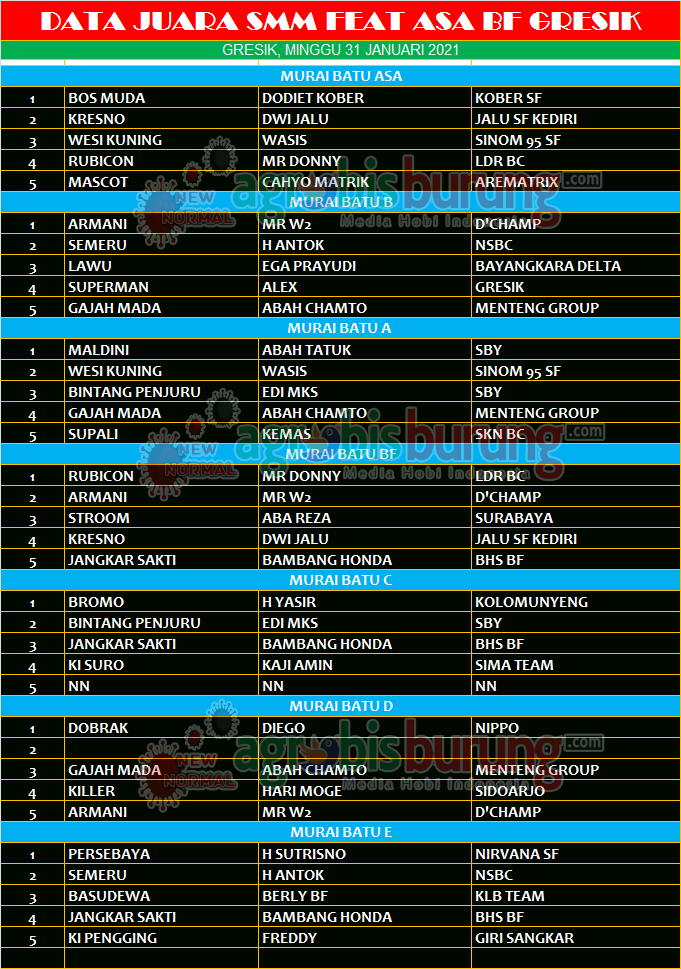 Headline Hobi Burung Juara Kicauan Kicauan Organizer Profil Data Juara SMM Feat Asa BF di Gresik, Minggu 31 Januari agrobisburung 1 Februari 2021 Data Juara SMM Feat Asa BF di Gresik, Minggu 31 Januari Tinggalkan Komentar GRESIK, agrobisburung.com – Data Juara SMM Feat Asa BF di Gresik, Minggu 31 Januari Tinggalkan Komentar Post navigation Previous: Farizky Milik Bahrun Saem Melejit di Latbernil Pengda TubanNext: Pasca Mabung MB Bejo Menang Di Kelas Utama Piala ABN Bekasi Raya More Stories Headline Juara Perkutut Profil Teamnya Semakin Solid, Jagonya Moncer di LP. Batavia #2 & Breedingnya Sudah Cetak Burung Ciamik agrobisburung 9 Februari 2026 Headline Hobi Lain Juara Perkutut Jawara Mistikus, Kingdom, Saritomo reborn & Bintang Baru Terbaik Utama di LP. #2 Batavia 2026 Bogor agrobisburung 9 Februari 2026 Headline Juara Perkutut Dibuka Kapolres , Jawara Red Bull, Super Star & Umar Bin Khatab Melejit Kepuncak Juara Di Gelaran Kapolres Cup Jombang 2026 agrobisburung 8 Februari 2026