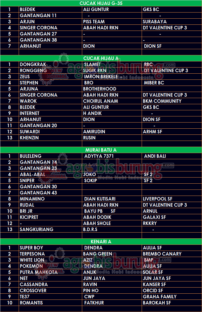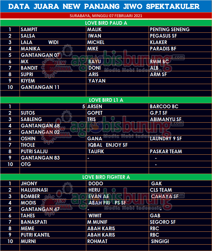 Data Juara New Panjang Jiwo Spektakuler di Surabaya, Minggu 07 Februari