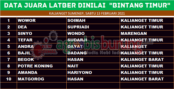 SUMENEP. agrobisburung.com – Geliat hobi perkutut jelang agenda perdana LPM (Liga Perkutut Madura) pada Maret mendatang memang berimbas semakin semaraknya hobi perkutut di daerah/pengcam & pengda di Madura. Salah satunya gelaran latbernil (dinilai) Bintang Timur yang di gelar pada Sabtu (13/02) di Kalianget Timur Sumenep sukses pelaksanaannya, walau hanya memainkan satu blok saja namun antusias pesertanya sangat luar biasa. Bahkan Wondo, ketua panitia mengatakan walau hanya “kumpulan arisan” rasa lomba dan doorprizesnya sangat luar biasa yang di sumbang oleh banyak kungmania dan juga ini juga menjadi persiapan agenda LPM Maret mendatang.