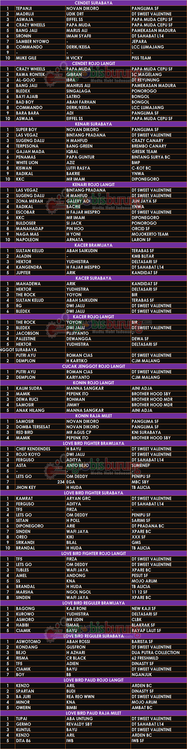 Headline Hobi Burung Juara Kicauan Kicauan Organizer Profil Data Juara RGN Surabaya Vaganza di Surabaya, Minggu 28 Februari agrobisburung 2 Maret 2021 Data Juara RGN Surabaya Vaganza di Surabaya, Minggu 28 Februari Tinggalkan Komentar SURABAYA, agrobisburung.com – Data Juara RGN Surabaya Vaganza di Surabaya, Minggu 28 Februari Tinggalkan Komentar Post navigation Previous: H FAISOL SYAFII JBM BF MALANG: Kesuksesan & Pembuktian itu diraih Selama 16 Tahun Produk JBM Selalu Moncer di LapanganNext: Kenari Sugeng Dalu H Mahfud Gresik Tampil Moncer Saat Gelaran RGN Surabaya Vaganza More Stories Headline Hobi Lain Perkutut Profil Christa Dwipa Praya NTB, Bakal Comeback Lomba Dengan Amunisi Ciamik Miliknya agrobisburung 17 Desember 2025 Headline Perkutut Profil Carpenter BF Mataram NTB, Kembangkan 50 Kandang Unggulan Dengan Trah Jawara agrobisburung 16 Desember 2025 Headline Perkutut Profil Satu Lagi Big Bos Asal NTB Bakal Ramaikan Perkutut Nasional 2026, Samuel BLT Arrowhead Siap Berkolaborasi HDL – Carpenter Dengan Amunisi Istimewa agrobisburung 15 Desember 2025