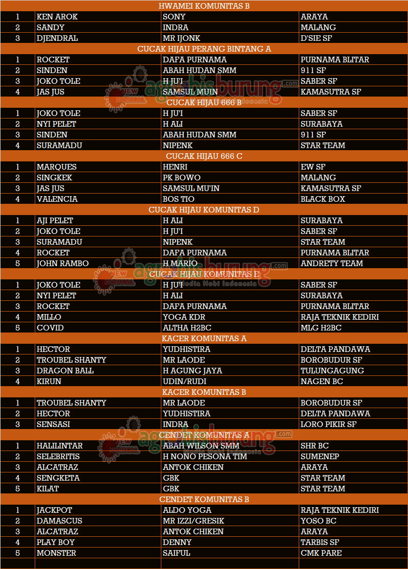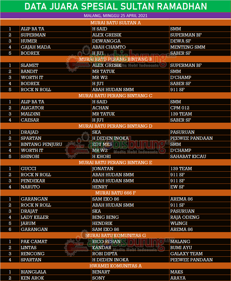 Headline Hobi Burung Juara Kicauan Kicauan Organizer Profil Data Juara Spesial Sultan Ramadhan di Malang, Minggu 25 April agrobisburung 26 April 2021 Data Juara Spesial Sultan Ramadhan di Malang, Minggu 25 April Tinggalkan Komentar MALANG, agrobisburung.com – Data Juara Spesial Sultan Ramadhan di Malang, Minggu 25 April Tinggalkan Komentar Post navigation Previous: Data Juara Puter Pelung Gema Ramadhan Di Sumedang, Minggu 25 AprilNext: Bajak Laut 4 Warna, Mahabrata Istimewa, Elsa BF Garut Taklukan Gema Ramadhan Sumedang More Stories Headline Juara Perkutut Profil Teamnya Semakin Solid, Jagonya Moncer di LP. Batavia #2 & Breedingnya Sudah Cetak Burung Ciamik agrobisburung 9 Februari 2026 Headline Hobi Lain Juara Perkutut Jawara Mistikus, Kingdom, Saritomo reborn & Bintang Baru Terbaik Utama di LP. #2 Batavia 2026 Bogor agrobisburung 9 Februari 2026 Headline Juara Perkutut Dibuka Kapolres , Jawara Red Bull, Super Star & Umar Bin Khatab Melejit Kepuncak Juara Di Gelaran Kapolres Cup Jombang 2026 agrobisburung 8 Februari 2026