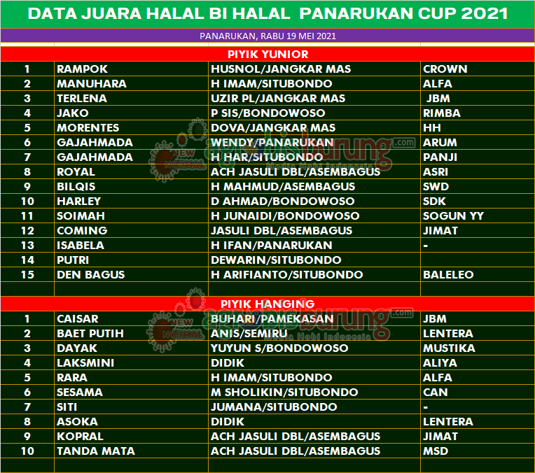 Headline Hobi Burung Juara Organizer Perkutut Perkutut Profil Data Juara Halal Bi Halal Panarukan Cup, Rabu 19 Mei agrobisburung 19 Mei 2021 Data Juara Halal Bi Halal Panarukan Cup, Rabu 19 Mei Tinggalkan Komentar Kru Juri yang Bertugas PANARUKAN, agrobisburung.com – Data Juara Halal Bi Halal Panarukan Cup, Rabu 19 Mei Tinggalkan Komentar Post navigation Previous: MB Pangeran Muda 3 Besar – Cendet Yess Broo Nyeri Saat Launching BnR Jangkar SurabayaNext: Rampok & Caisar bikin geger di Halal Bihalal Panarukan Cup 2021 More Stories Headline Juara Perkutut Sukses & Mengukir Sejarah Hobi Perkutut Pantura, Jawara Raja Naga, Sukma Jaya & Joko Tingkir Menjadi Rising Star Diseri perdana Liga Pabaru 2026 Waru Pamekasan agrobisburung 14 Februari 2026 Headline Juara Perkutut Sukses Di Pembukaan Ladini Mini Seri Depok 2026, Jawara Karebet, Pajero & Kamandaka Menguasai Podium Pertama agrobisburung 14 Februari 2026 Headline Hobi Lain Perkutut Profil Siap Terjun Ke LPI 2026, Nurul Anggun Take Over Jawara Muda Hipersonik dari Kurniadi ASM Dengan Deal Fantastik agrobisburung 11 Februari 2026