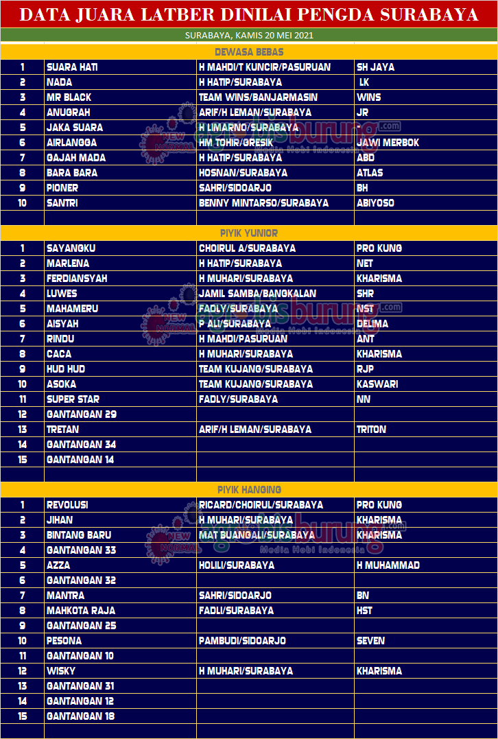 Headline Hobi Burung Juara Organizer Perkutut Perkutut Profil Data Juara Latber Dinilai Pengda Surabaya, Kamis 20 Mei agrobisburung 20 Mei 2021 Data Juara Latber Dinilai Pengda Surabaya, Kamis 20 Mei Tinggalkan Komentar SURABAYA, agrobisburung.com – Data Juara Latber Dinilai Pengda Surabaya, Kamis 20 Mei Tinggalkan Komentar Post navigation Previous: Rampok & Caisar bikin geger di Halal Bihalal Panarukan Cup 2021Next: Suara Hati & Due Produk Prokung Tampil Ciamik di Latber Dinilai Pengda Surabaya More Stories Headline Hobi Lain Perkutut Profil Christa Dwipa Praya NTB, Bakal Comeback Lomba Dengan Amunisi Ciamik Miliknya agrobisburung 17 Desember 2025 Headline Perkutut Profil Carpenter BF Mataram NTB, Kembangkan 50 Kandang Unggulan Dengan Trah Jawara agrobisburung 16 Desember 2025 Headline Perkutut Profil Satu Lagi Big Bos Asal NTB Bakal Ramaikan Perkutut Nasional 2026, Samuel BLT Arrowhead Siap Berkolaborasi HDL – Carpenter Dengan Amunisi Istimewa agrobisburung 15 Desember 2025