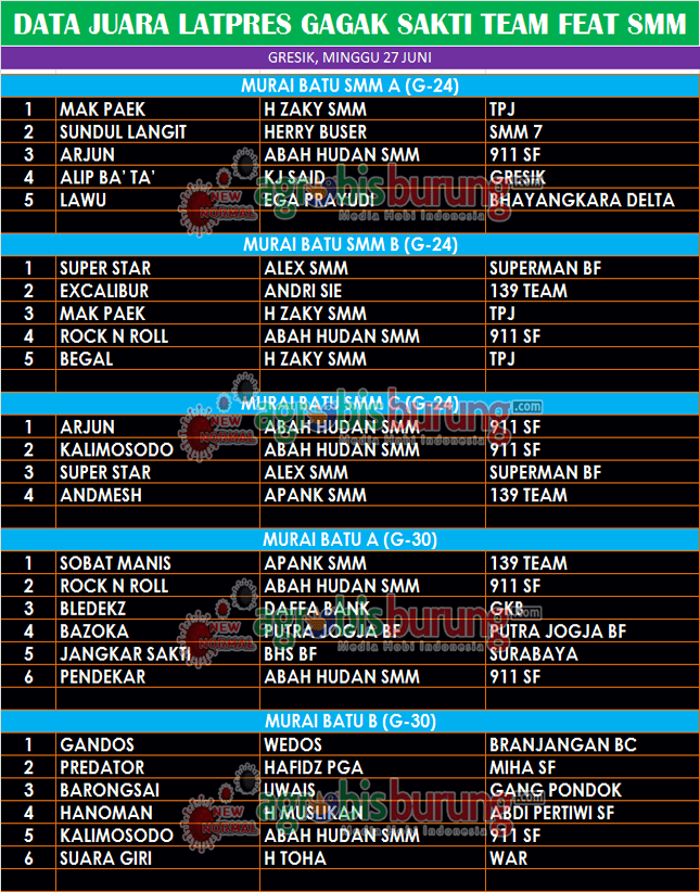 Data Juara Latpres Gagak Sakti Team Feat SMM di Gresik, Minggu 27 Juni