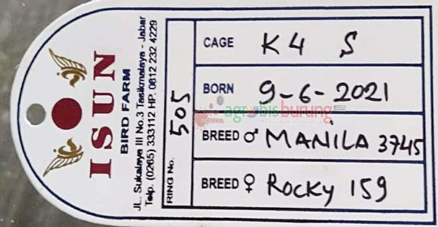 TASIKMALAYA, agrobisburung.com – Selang beberapa hari usai mengambil anak pertama dan booking anak ketiga Isun K.4S, Abay Palem BF Tasikmalaya langsung menjebol indukannya sekalian. Indukan K.4S bermaterikan jantan Manila K.A5 Songgoronno dengan betina Rocky Victoria. “Puji Tuhan, kandang 4S langsung dijebol lagi sama Koh Abay Palem. Meski sudah ada ngantri bookingan anak ketiga,” ungkap Isun.