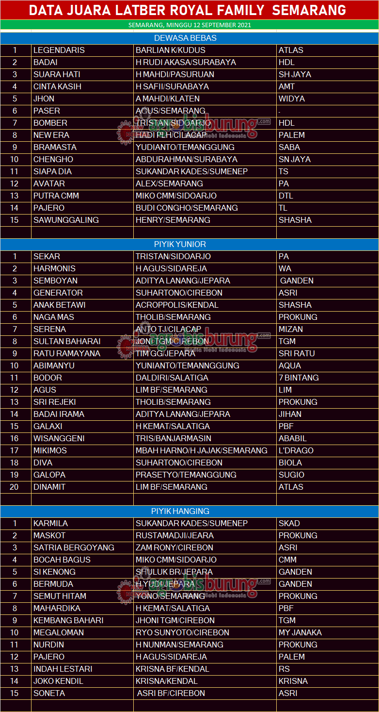 Data Juara Liga Royal Family “Altas Cup” Semarang, Minggu (12/09)