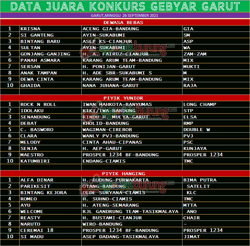 Headline Hobi Burung Juara Organizer Perkutut Perkutut Profil Data Juara Konkurs Gebyar Garut Cup 2021, Minggu 26 September agrobisburung 26 September 2021 GARUT, agrobisburung.com – Data Juara Konkurs Gebyar Garut Cup 2021, Minggu 26 September Tinggalkan Komentar Post navigation Previous: Data Juara Laga Utama Lawang Sewu Cup 2021 (Dewasa) di Semarang, Minggu 26 SeptemberNext: Duel Seru Super Diplomat & Legendaris Perfecto, Ronggolawe Moncer di Laga Utama Lawang Sewu Cup Semarang More Stories Headline Juara Perkutut Pemanasan Jelang Pembukaan LPJB 2026, Unicorn Naik Kelas & Cirebon Trusmi Ngorbit di Liga Kopi Luhur #6 (Penutupan Poin) Cirebon agrobisburung 18 Januari 2026 Headline Hobi Lain Juara Perkutut Jawara Airlanga Moncer Bareng bersama Antsena & Mr M-307 Di Latihan Dinilai Tarkam Galaxy Gresik agrobisburung 18 Januari 2026 Headline Juara Perkutut Jawara Red Bull “Pecah Telor” Empat Warna Di Latihan Dinilai Dewandaru Tulungagung, Jawara Sulur Mas & Deva Alam Moncer di Podium Utama agrobisburung 18 Januari 2026